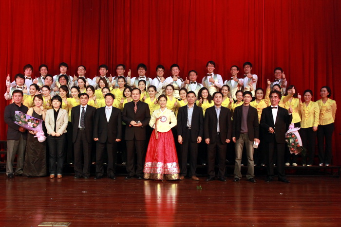 音樂會由常州市政府外事辦張處長及韓國交流公務員金女士主持,學院黨委副書記張濤、市外辦主任沈一林、副主任都文平等領導出席了此次音樂盛典,首先,張書記代表學院領導致詞,他強調指出南楊州市立合唱團再次來到輕院演出,不僅是中韓友城文化和藝術的交流,更是展示了南楊州人民對在常高校師生的一片至深情誼。其次,合唱團團長崔承奭先生對我院的精心安排表示了感謝。整個演出過程可謂高潮迭起,一首首耳熟能詳的經典歌曲在各位演員的深情演繹下達到了完美的視聽效果,博得了觀眾的經久不息的掌聲,韓文歌舞《nobody》、中文歌曲《朋友》、《我和你》更是將音樂會現場氣氛推向了至高點。我們深信,隨著本次高雅音樂會的成功舉辦,我們廣大師生將對中韓文化有了進一步的了解,同時,將為學院的進一步發展提供更為寬廣的平臺。