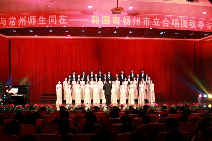 1999年9月21日,常州市與韓國南楊州市締結為國際友好城市。11年來,兩市在經貿、文化、教育、衛生、體育等各領域的交流與合作都取得了豐碩的成果。此次演出是繼10月30日合唱團在常州大劇院演出之后的第二場演出,也是今年度在常的最后一場演出,該合唱團隸屬于韓國政府,是一個高級別的演出團隊,在韓國享有一定得聲譽,演員陣容強大,由韓國首席指揮家高聖鎮擔任指揮,鋼琴家金寶瑛伴奏,演員由50余名聲樂系畢業的碩士生組成。
