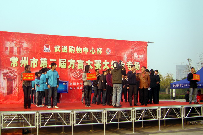 116,由常州電視臺生活頻道舉辦的第二屆“369常州方言大賽”大學生專場在我院北廣場舉行,常州著名電視主持人樓益華現場主持,評委由常州方言協會金麗藻、季全保和周曉東三位方言專家擔任,常州電視臺生活頻道進行了直播。參賽的三支隊伍來自常州工學院、常州輕院以及常州信息學院,其中我院組織了旅游系15位學生組成代表隊參加此次大賽。