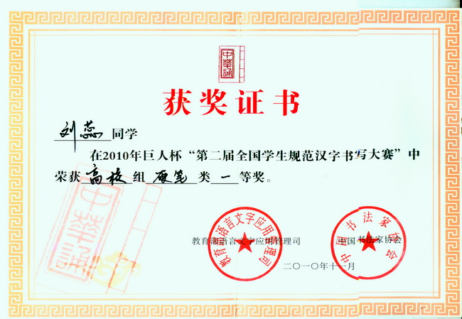 在座談會(huì)上,孫愛(ài)民老師介紹了本次大賽的具體情況以及輔導(dǎo)學(xué)生參加競(jìng)賽的整個(gè)過(guò)程。此次全國(guó)學(xué)生規(guī)范漢字書(shū)寫(xiě)大賽自2010年5月啟動(dòng)以來(lái),全國(guó)共有938萬(wàn)余名學(xué)生參賽,被上海大世界吉尼斯總部認(rèn)證為“規(guī)模最大的規(guī)范漢字書(shū)寫(xiě)大賽”,其中不乏很多書(shū)法專業(yè)選手,但劉蕊同學(xué)沉著冷靜,認(rèn)真準(zhǔn)備,在眾多選手中取得了書(shū)法技藝排名第七,綜合素質(zhì)排名第十并榮獲高校組一等獎(jiǎng)的好成績(jī),這也是江蘇高職院校唯一的“一等獎(jiǎng)”。