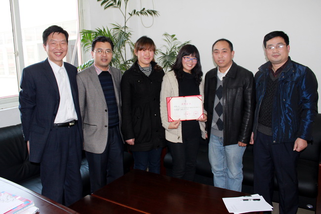 獲得第二屆全國(guó)學(xué)生規(guī)范漢字書(shū)寫(xiě)大賽高校組一等獎(jiǎng)的藝術(shù)設(shè)計(jì)系09廣告331班的劉蕊同學(xué)以及三等獎(jiǎng)獲得者09造型331班李方圓同學(xué)載譽(yù)歸來(lái),藝術(shù)設(shè)計(jì)系黨總支金培珍書(shū)記、方四文主任、檀祝平副書(shū)記于11月18日在工訓(xùn)樓109室親切接見(jiàn)了他們及其指導(dǎo)老師孫愛(ài)民副教授。獲獎(jiǎng)學(xué)生及其指導(dǎo)老師與藝術(shù)設(shè)計(jì)系領(lǐng)導(dǎo)進(jìn)行了座談。
