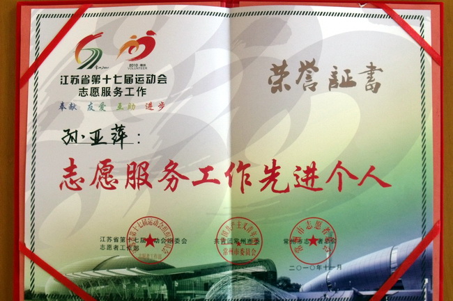 為全面總結(jié)江蘇省第十七屆運(yùn)動會志愿服務(wù)工作成效和經(jīng)驗(yàn),進(jìn)一步推進(jìn)全市志愿服務(wù)工作,省運(yùn)會志愿者工作部、團(tuán)市委與市志愿者總會于2010年11月19日下午2:00在市行政中心群賢堂召開了江蘇省第十七屆運(yùn)動會志愿服務(wù)工作總結(jié)激勵大會。市委常委、宣傳部長徐纓等相關(guān)領(lǐng)導(dǎo)出席了激勵大會。