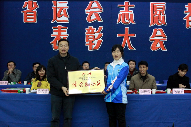 會議由團委副書記嵇天培主持,首先回顧了我院350余名賽事志愿者、30余名崗亭志愿者、50余名服務于志愿者服務站的志愿者的工作情況以及省市各級領導對我院志愿者的慰問和贊揚;接下來,會議表彰了省運期間涌現出的一大批先進的集體和個人,許歡同學代表四百余名志愿者發言;院黨委張濤副書記在會議上對獲獎的集體和個人表示祝賀,并希望廣大志愿者能夠繼續發揚“奉獻、友愛、互助、進步”的志愿服務精神,練就良好的身體素質和心理素質以及綜合素質,爭做高素質高技能型人才,在今后進一步發揚“愛崗敬業,自強不息”的建軍精神!