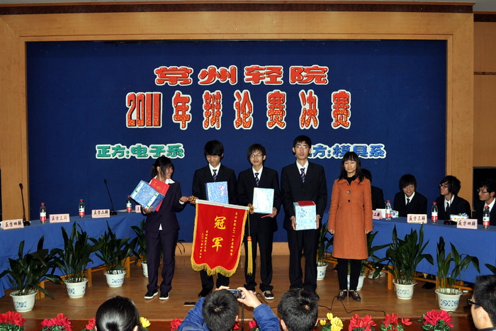 辯論是智慧的較量,是語言的藝術,是思想進步的階梯。近年來,我院堅持不懈地通過“建軍杯”辯論賽這一比賽形式,營造了濃厚的辯論氛圍,提高了學生的思辨能力和綜合素質,并成功組建了輕院辯論隊。在去年舉行的常州市大學生辯論賽中,包括我院在內的14所在常高校、高職院、高職校報名參加。我院辯論隊經過歷時一個多月的精心準備和三場比賽激烈角逐,最終榮獲季軍。