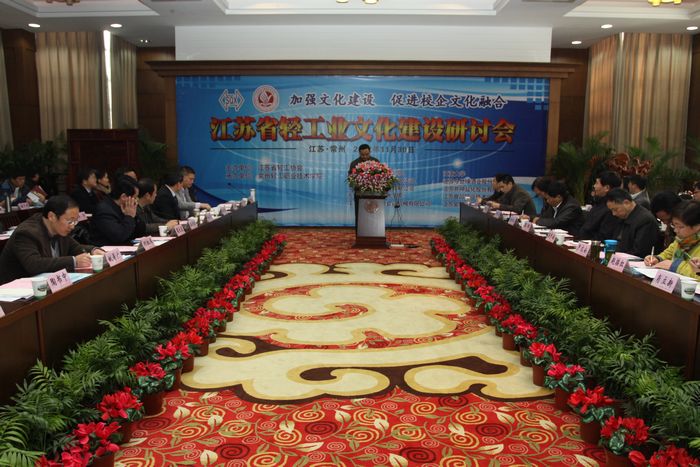 11月30日,江蘇省輕工協會在我院召開2012年年會。這次會議的主題是:加強文化建設,促進校企文化融合。會議由省輕工業協會主辦,我院承辦,來自全省輕工企業和與輕工有關的職業院校60多人參加了會議。大會由輕工協會副理事長兼秘書長吳學敏主持,南京工業職業技術學院院長、代理事長孫愛武作開幕詞;我院周大農院長致歡迎詞,張濤副書記和我院部分中層干部參加會議,楊興華書記作《構建以鄧建軍精神為核心的學校文化》專題發言,展示了我院特色文化的創建過程及所取得的成效。