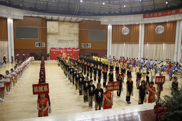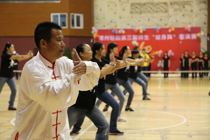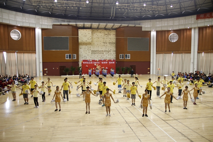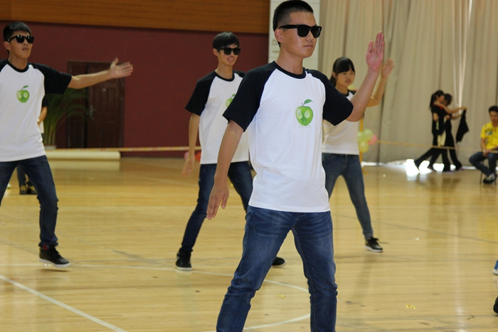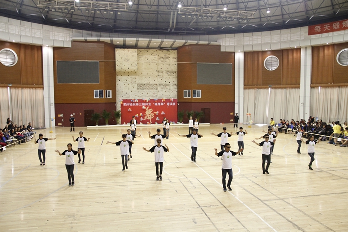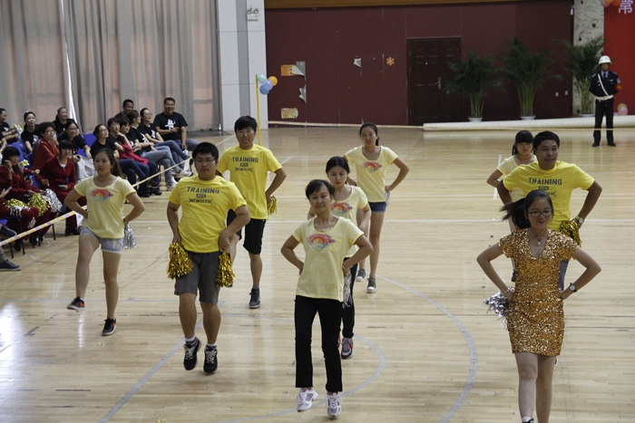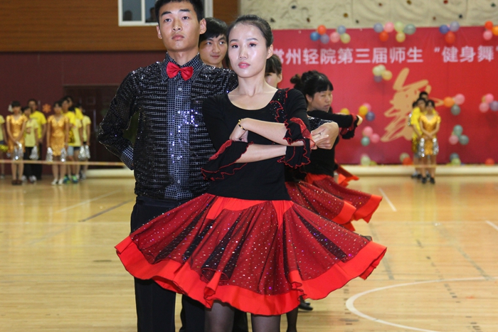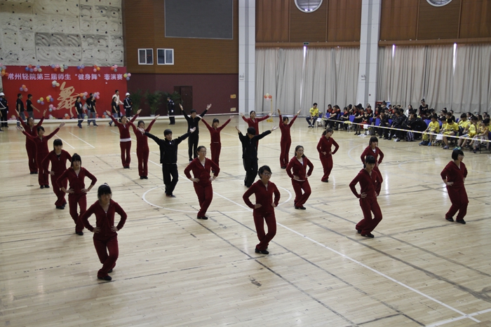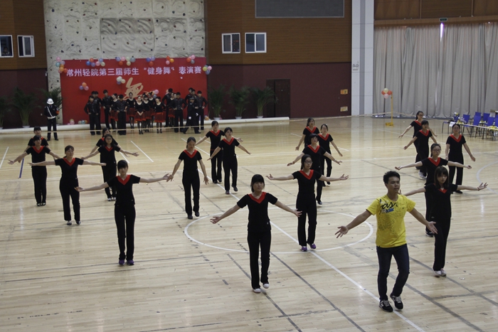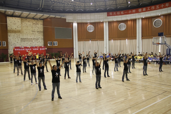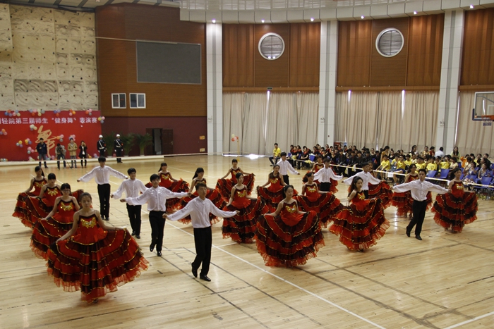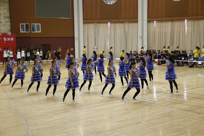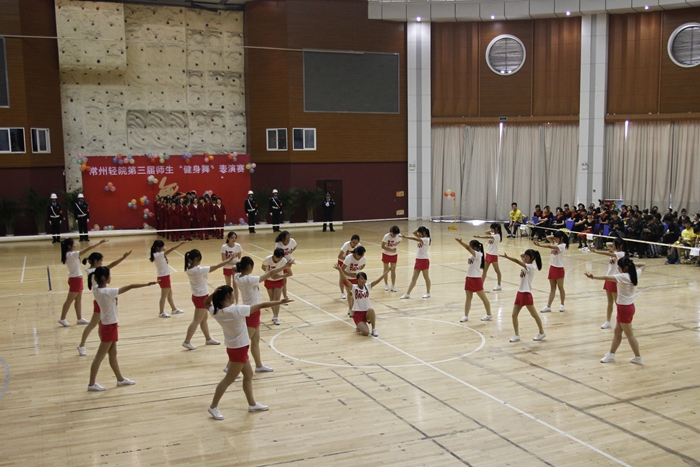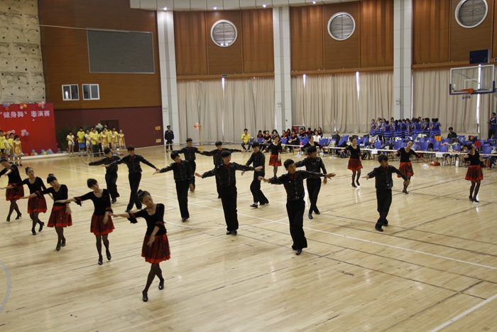 大賽的開場以一曲《歡樂一起來》的開場舞展開,全體參賽師生在熱烈歡快的音樂聲中共同舞動手中的花球,激情拉開帷幕。開場舞之后,學院的各個代表隊分別展示了自己精心編排的健身舞,風格各異,盡顯風采。藝術系師生表演的《魔力火車》第一個出場,整齊輕盈的舞步伴著時尚摩登的音樂,給觀眾帶來獨特的異域風情;信息系代表隊的小清新舞蹈《一萬個舍不得》,師生一起帶給觀眾耳目一新的清涼之風 ;機械系代表隊的《舞動中國》氣勢宏大,振奮人心;機關一、機關二、基礎部、體育部聯隊教師表演的踢踏舞《舞曲串燒》, 全部由教職工上場表演,陣容強大,風格多變,帶動了全場氣氛,贏來了現場觀眾的陣陣掌聲與吶喊聲;模具系師生穿著華麗的服飾,激情演繹了《今夜舞起來》,帶給我們別樣的視聽感受;而電子系師生帶來的《華爾茲圓舞曲》,又仿佛帶著觀眾走進了多瑙河畔的維也納;輕工系師生帶來熱鬧的《跳到北京》和管理系師生帶來的《寒冷因素》風格各異,給觀眾不一樣的視覺享受;旅游系師生不僅讓觀眾欣賞到神曲《小蘋果》的魅力更是加入了服務行業的專業禮儀手勢表演,讓觀眾感受到了對于專業知識的學習的重要性。師生們在舞蹈中舞出了活力,舞出了健康,舞出了激情,最后大賽在全體師生表演的《永遠的朋友》中圓滿落幕。