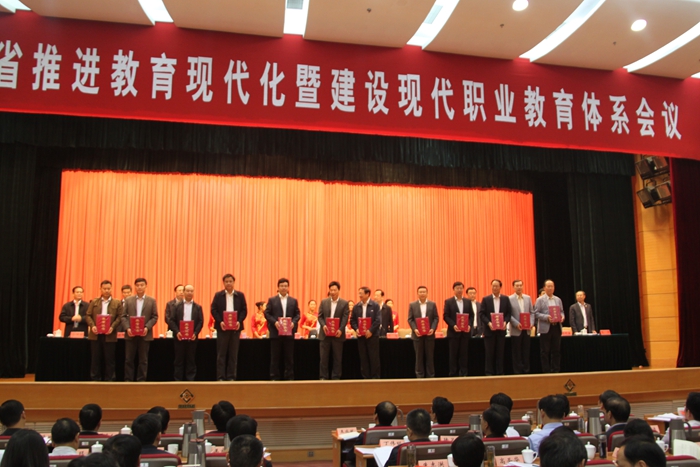 1023,全省推進教育現代化暨建設現代職業教育體系會議在南京召開。會議貫徹落實習近平總書記重要講話和全國職業教育工作會議精神,深入推進全省教育現代化建設工作,重點部署職業教育改革發展,重點表彰了一批在全省職業教育工作中做出積極貢獻的單位和個人。本次會議上,我院榮獲“2014年江蘇省職業教育先進單位”稱號。學院黨委書記楊興華代表學院上臺領獎。