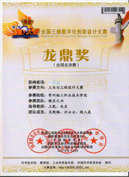由科技部國家制造業(yè)信息化培訓(xùn)中心和常州市人民政府共同主辦的2014全國三維數(shù)字化創(chuàng)新大賽總決賽于12月5日-12月7日在常州科教城隆重舉行,我院副院長楊勁松作為頒獎(jiǎng)嘉賓出席了頒獎(jiǎng)典禮。
