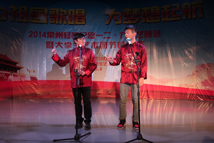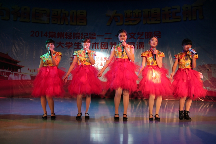 晚會緊扣為祖國歌唱,為夢想起航的主題,內容豐富,形式多樣。演出以氣勢磅礴的大合唱《四渡赤水出奇兵》拉開序幕,激昂的旋律把觀眾帶回到艱苦的戰爭年代;現代舞《舞動青春》以輕松歡快的樂曲,詮釋著無限青春與激情,把晚會的氣氛調動了起來;歌曲聯唱《歲月如歌》匯集了多首經典歌曲,彰顯了青年人特有的蓬勃朝氣,引來陣陣歡呼與掌聲;配樂詩朗誦《祖國啊,我親愛的祖國》以震撼人心的視頻畫面和聲情并茂的朗誦,深深地感染了每一位觀眾;歌曲《時間都去哪了》把晚會推向高潮,飽含深情的歌曲配以我院幾十年來發展的畫面,表達了學子對母校的感激和感恩之情;相聲《三國重品》幽默搞笑;《器樂聯奏》與鋼琴小提琴二重奏《神秘園之歌》展現出中外樂器的風格與魅力;歌曲《至少還有你》深情婉轉;古典舞《年年有余》以輕盈的舞姿、嫻熟的步調再現了古典舞特有的魅力,給晚會增添了一抹炫麗的色彩;小合唱《駿馬奔馳保邊疆》表現出當代大學生充滿時尚活力、忠心保家衛國的堅定信念;最后,晚會在歌伴舞《共圓中國夢》的歌聲中圓滿落幕。