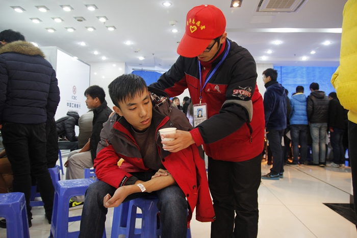 志愿者為獻(xiàn)血同學(xué)熱情服務(wù)