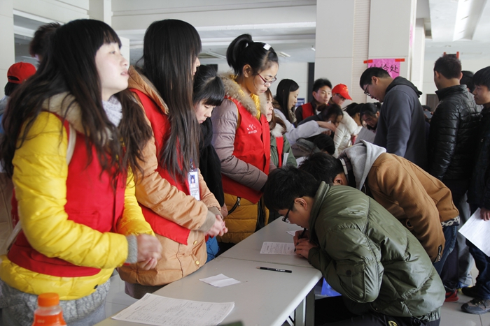 獻(xiàn)血的同學(xué)填寫(xiě)獻(xiàn)血登記表