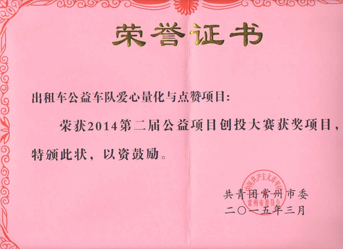 近日,由常州團市委、常州廣播電臺聯合舉辦的"萬幫新能源"杯第二屆常州市公益創投大賽評選結果揭曉,我院團委“Calm科技與公益服務社”報送的“出租車公益車隊愛心量化與點贊項目”獲得立項,這是所有獲獎項目中唯一一個以科技應用為亮色的青年志愿活動。