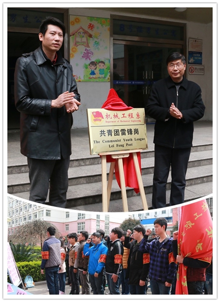 為進(jìn)一步弘揚(yáng)雷鋒精神,規(guī)范青年志愿者工作,倡導(dǎo)社會(huì)文明新風(fēng),深化學(xué)雷鋒常態(tài)化活動(dòng)的開展,機(jī)械工程系于3月26日舉行了共青團(tuán)雷鋒崗揭牌成立儀式。學(xué)院團(tuán)委書記季華、機(jī)械工程系黨總支書記蔣志強(qiáng)、黨總支副書記孫軍、團(tuán)委書記王平、機(jī)械工程系共青團(tuán)雷鋒隊(duì)全體隊(duì)員、各班學(xué)生代表出席了成立儀式。