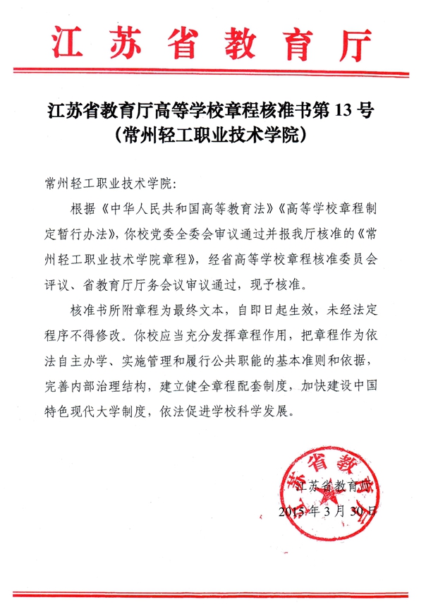 本次共有15所高校的章程經省教育廳核準,其中高職院章程6部。省教育廳要求年底前全省所有高校完成章程的制訂。