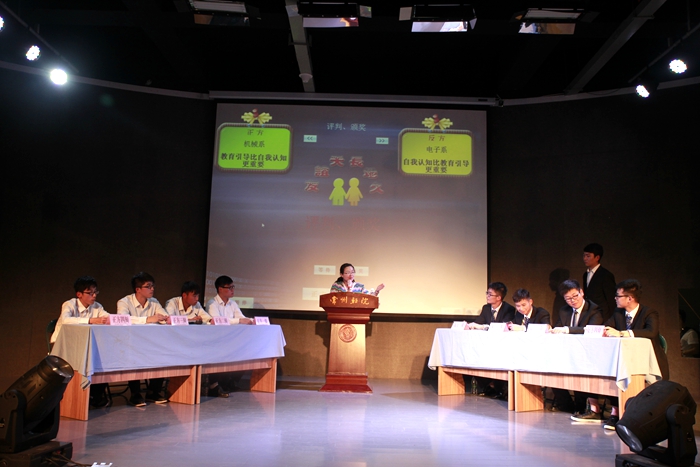 來自各系共八支代表隊參加了我院2015年“建軍杯”辯論賽,他們積極參與,充分準備,奉獻了一場又一場精彩絕倫的比賽。總決賽上,電子系代表隊和機械系代表隊圍繞“教育引導與自我認知哪個更重要”這一辯題展開辯論。在歷時一個多小時的激辯交鋒中,雙方辯手都圍繞著本方觀點,拿出古今中外的典型例子,在申明自己立場的同時,也頻頻發問把對方的觀點推倒,激烈的唇槍舌戰贏得了臺下觀眾陣陣掌聲。