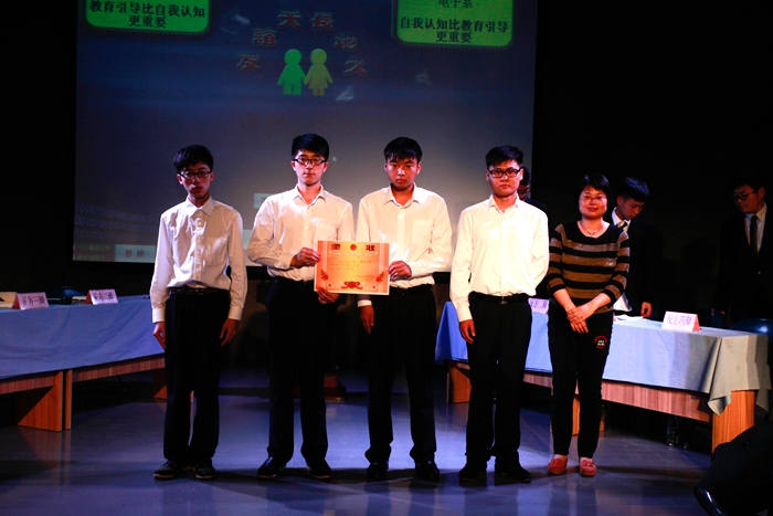 院團委書記季華老師為冠軍電子系代表隊頒獎