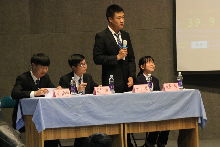 來自各系共八支代表隊參加了辯論賽,他們積極參與,充分準備,為我們奉獻了一場又一場精彩絕倫的比賽。總決賽上,機械系代表隊和信息系代表隊圍繞“愛情還是友情更為重要”這一辯題展開辯論。在歷時一個多小時的激辯交鋒中,雙方辯手都圍繞著本方觀點,拿出古今中外的典型例子,在申明自己立場的同時,也頻頻發問把對方的觀點推倒。這場唇槍舌戰自然贏得了臺下觀眾陣陣熱烈的掌聲。
