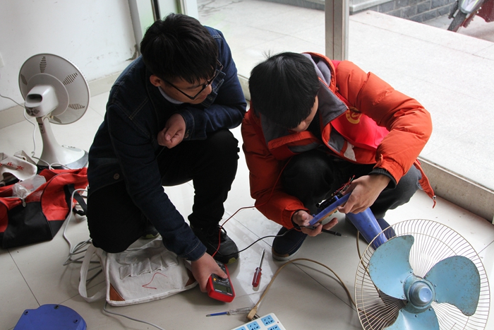 參加公益維修志愿服務(wù)的同學(xué)們?cè)诰游瘯?huì)和關(guān)工委王方大老師的安排下,熱情接待前來維修家電的社區(qū)群眾。在整個(gè)義務(wù)維修活動(dòng)中,共維修多件電飯鍋、錄音機(jī)、收音機(jī)、電風(fēng)扇等故障電器。志愿者們?cè)谥笇?dǎo)老師的指導(dǎo)下,進(jìn)行現(xiàn)場(chǎng)“會(huì)診”維修,并對(duì)癥“下藥”。居民們見自己的小家電又恢復(fù)了正常,臉上露出了喜悅的笑容,前來維修家電的群眾對(duì)同學(xué)們的志愿服務(wù)贊不絕口,同學(xué)們獲得了社會(huì)這個(gè)大課堂所帶來的不一樣的專業(yè)知識(shí)的鍛煉。
