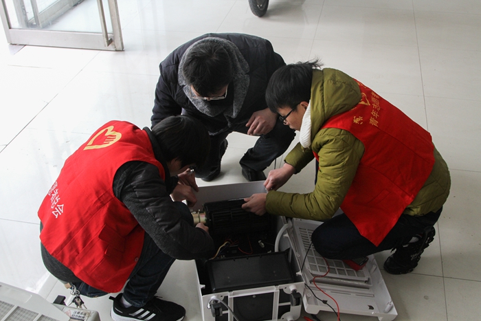 在電子系黨總支、團(tuán)委的精心組織和關(guān)工委老師熱情幫助下,電子系團(tuán)委書記韓楊、流光映紀(jì)拍客俱樂部指導(dǎo)老師張書貴、家電維修協(xié)會(huì)指導(dǎo)老師顧六平帶領(lǐng)家電維修社志愿者、學(xué)生黨員志愿者、拍客協(xié)會(huì)志愿者,于 12月14日 走進(jìn)常州市長(zhǎng)虹社區(qū),開展家電公益維修活動(dòng)。????????