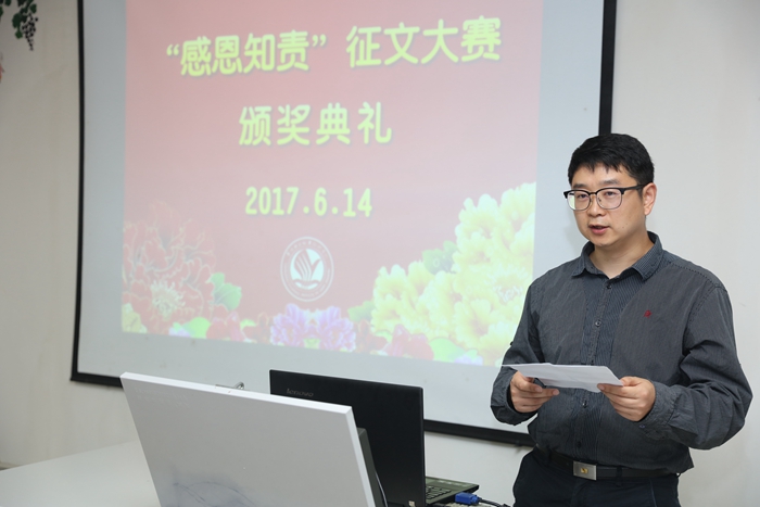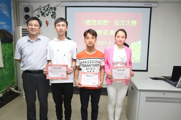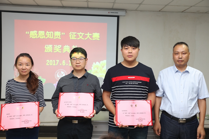 隨后,黨委宣傳部部長張燏宣讀了“感恩知責(zé)”征文大賽的獲獎名單,相關(guān)院領(lǐng)導(dǎo)給獲獎師生代表頒發(fā)了證書及獎品。