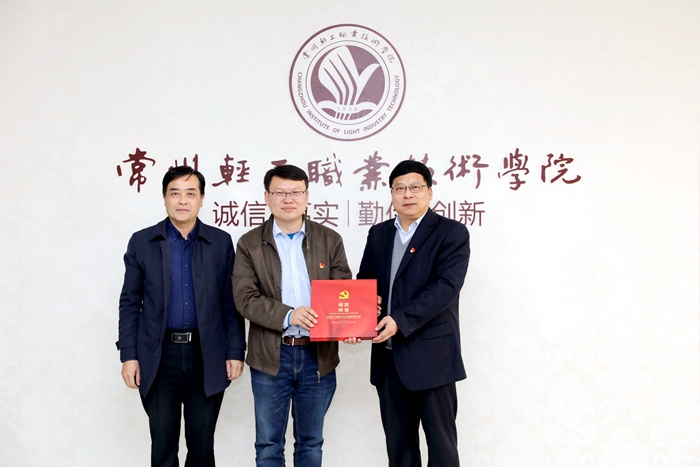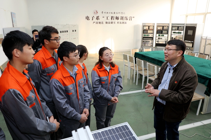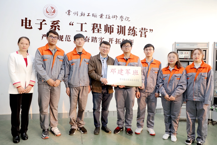 宣講會之前,鄧建軍給母校贈送了從人民大會堂帶來的紀念郵冊,并接受了院長楊勁松頒發(fā)的產(chǎn)業(yè)教授聘書。會后,在楊勁松院長陪同下,鄧建軍來到他原來所在的電子系看望了正在參加2017年全國機械行業(yè)職業(yè)院校技能大賽的學(xué)生,與“鄧建軍班”的學(xué)生進行了交流,并參加了“鄧建軍班”班牌傳承交接儀式。