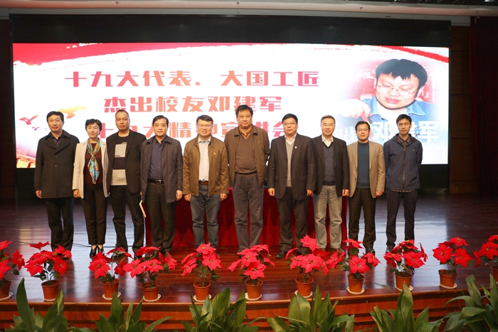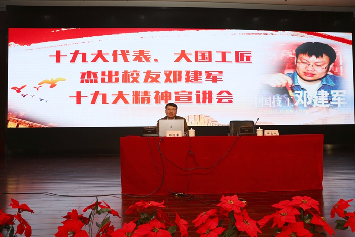 11月15日下午,黨的十七大、十八大、十九大代表、杰出校友鄧建軍回母校宣講黨的十九大精神以及他對“工匠精神”“勞模精神”的獨特理解。