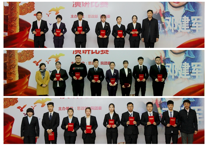 11 月29日晚,我院舉行“學習鄧建軍樹立新目標”演講比賽決賽。學院副院長姚慶文致辭,馬克思主義學院教師擔任評委,全院師生共有二百余人觀看了比賽。