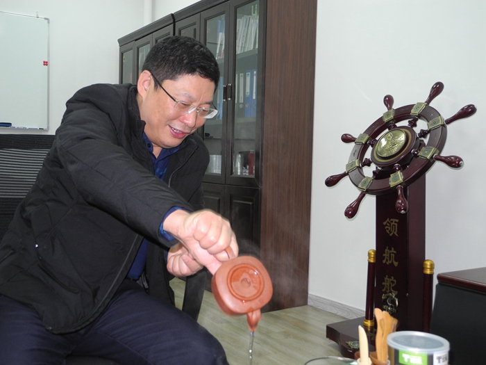 他不喜歡跟政府官員打交道。前幾年有人介紹了一筆2000萬的地鐵配電柜生意,利潤豐厚,但是他放棄了,因為他實在不想過那種磕頭求人的日子。采訪至中午,他招待年近退休的班主任和任課老師,酒都已經倒好了半天了,他只顧講話竟忘了招呼大家開始用餐;吃飯吃到一半,他才想起把口袋里的一包煙掏出來發給老師們——他不是一個喜歡應酬的人。