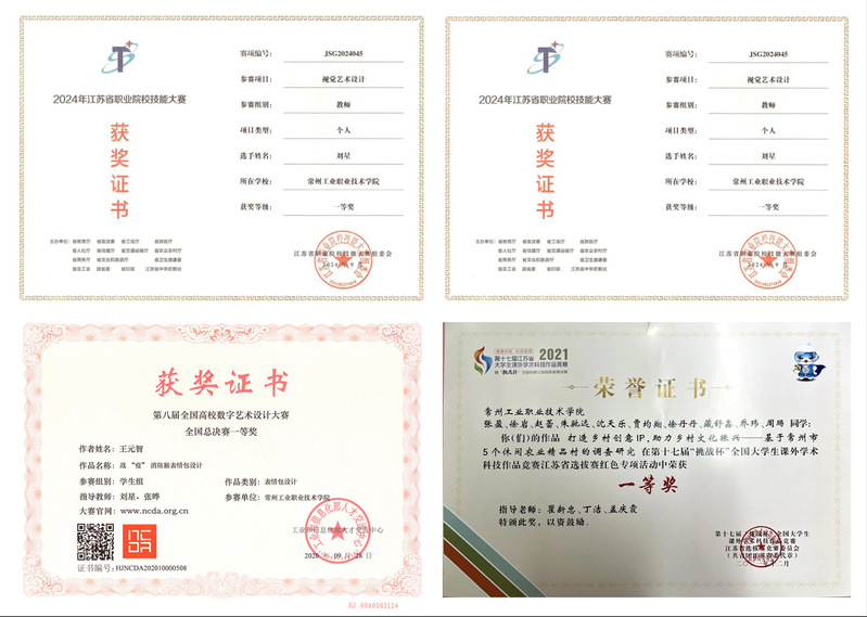 屠珍菀:講師,畢業于江蘇理工學院,上海戲劇學院進修,常州市工藝美術家協會會員,騰訊云1+X界面設計職業技能培訓認證講師,廣告設計師考評員。在各類專業期刊雜志發表多篇論文,指導學生參加全國大學生廣告藝術大賽、全國高校數字藝術大賽獲得國家級、省級一等獎、三等獎若干,獲優秀指導老師若干次;指導學生獲職業技能大賽省級三等獎;指導學生參加大學生創新創業訓練計劃省級立項結題。