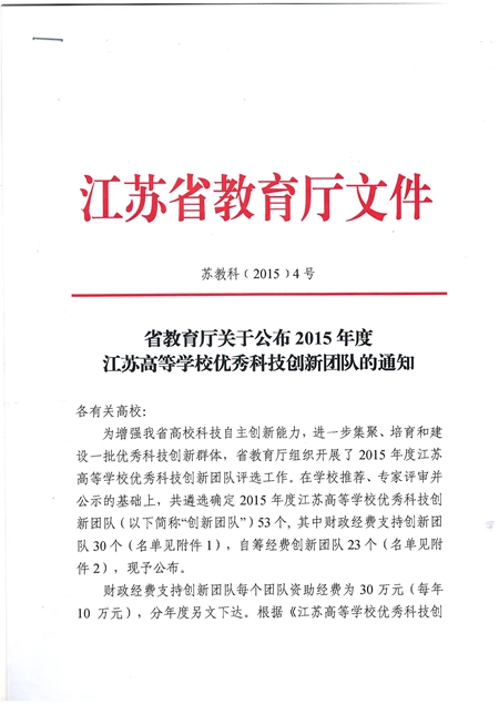 2015年,團隊與常州先進制造研究所合作共建的“常州智能裝備產(chǎn)業(yè)集群科技創(chuàng)新服務(wù)中心”項目再次獲得國家火炬計劃立項。申報的“大型中心傳動高效節(jié)能球磨機的研制開發(fā)”“替代進口的數(shù)字化生物病理組織脫水機的研制與產(chǎn)業(yè)化”兩個項目成果分獲2015年度江蘇省輕工協(xié)會科技進步二、三等獎。