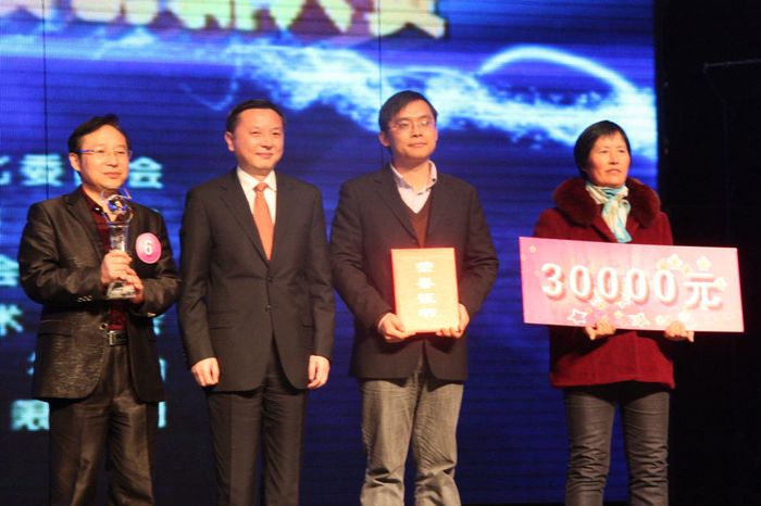 南車戚墅堰機(jī)車車輛工藝研究所有限公司參賽的“WT1650風(fēng)電齒輪箱的研制及產(chǎn)業(yè)化”項目已實現(xiàn)產(chǎn)值1.2億,預(yù)計“十二五”期間形成銷售12億元。面對強(qiáng)大的對手,暫居第二的袁鋒教授并不膽怯,在激烈的辯論后,袁鋒教授以一句話打動評委:“雖然我們是高職院校,校企合作的企業(yè)也是個小企業(yè),但我們的教師、我們的團(tuán)隊為常州的LED產(chǎn)業(yè)作了大量的技術(shù)服務(wù)工作,我們的專業(yè)也為常州的LED企業(yè)培養(yǎng)了LED高技能人才,我們有科技創(chuàng)新的熱情與能力,而本次大賽的宗旨就是為了鼓勵和支持更多的中小企業(yè)進(jìn)行技術(shù)創(chuàng)新?!?br /> 最終,評委被袁鋒教授的話語深深打動,評委舉牌決定PK結(jié)果,我院反敗為勝,獲得了本屆科技創(chuàng)新大賽的冠軍, 贏得了3萬元的大獎。南車戚墅堰機(jī)車車輛工藝研究所有限公司與常州環(huán)視高科電子科技有限公司獲二等獎,各獲獎金2萬元。常州中興華達(dá)科技有限公司等三家企業(yè)獲三等獎,各獲獎金1萬元。常州市委常委、科教城黨工委書記徐光輝親自為袁鋒教授領(lǐng)銜的校企合作團(tuán)隊頒獎并合影留念。