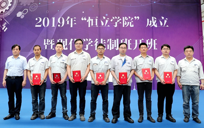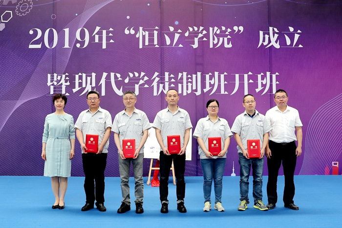 5月27日,我校與江蘇恒立集團共建的企業學院——“恒立學院”成立暨2019年現代學徒制班開班儀式在江蘇恒立液壓股份有限公司鑄造分公司舉行。學校黨委書記繆昌武和江蘇恒立集團總經理邱永寧共同為恒立學院揭牌,校長楊勁松和恒立鑄造總經理楊連偉為孫祥廣等七位產業教授頒發聘書,副校長蔣新萍和總經理莊曄為孫斐等五位企業導師頒發聘書。