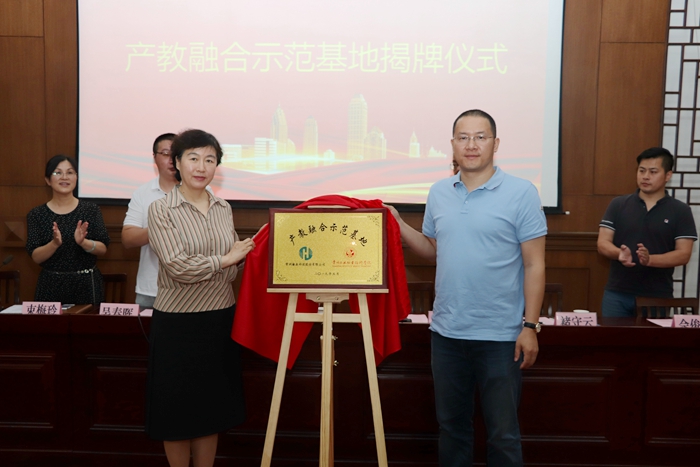 首先,蔣新萍代表學(xué)校致歡迎辭。她介紹了近兩年來學(xué)校在人才培養(yǎng)、校企合作方面取得的突破性成效:2018年獲全國“互聯(lián)網(wǎng)+”大學(xué)生創(chuàng)新創(chuàng)業(yè)大賽金獎,2019年獲全國高職院校“育人成效”“國際影響力”雙50強(qiáng)、江蘇省“挑戰(zhàn)杯”特等獎等。蔣新萍希望雙方依托產(chǎn)教融合示范基地,在人才培養(yǎng)、創(chuàng)新創(chuàng)業(yè)方面積極探索,構(gòu)筑完備的創(chuàng)新創(chuàng)業(yè)服務(wù)鏈。會中,蔣新萍和楊益明共同為產(chǎn)教融合示范基地揭牌。