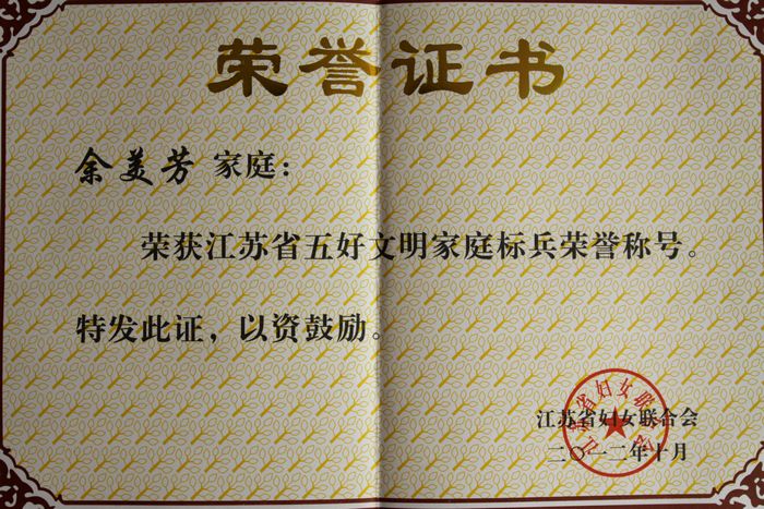 近日,從全國婦聯和江蘇省婦聯傳來喜訊,我院模具系余美芳老師家庭榮獲第八屆“全國五好文明家庭”和2012年“江蘇省五好文明家庭標兵”稱號,這是繼今年余老師以其“五姓之家的敬老故事”入選2012江蘇好青年百人榜之 “孝老愛親”榜后,她們一家所收獲的又一殊榮。