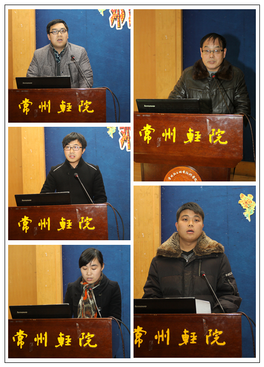此次年會的主題是“社會主義核心價值體系與學(xué)校文化建設(shè)”,共五位老師進(jìn)行了交流。基礎(chǔ)部楊湘洪老師介紹了以“三個倡導(dǎo)”為核心內(nèi)容的社會主義核心價值觀,強(qiáng)調(diào)了踐行社會主義核心價值觀需要加強(qiáng)宣傳,落實(shí)相應(yīng)的制度保障,同時領(lǐng)導(dǎo)干部應(yīng)發(fā)揮示范和引領(lǐng)作用。學(xué)工處彭波老師從核心價值觀中的“友善”入手,結(jié)合社會上頻繁出現(xiàn)的諸如“老人摔倒”、碰瓷現(xiàn)象等,強(qiáng)調(diào)了人際關(guān)系交往中友善的重要性。藝術(shù)系分團(tuán)委書記潘逸結(jié)合自己所從事的共青團(tuán)工作,論述了在團(tuán)員青年中開展社會主義核心價值觀教育的可行性和必要性。管理系徐克選老師從核心價值觀中的“誠信”入手,結(jié)合我院在誠信教育主題活動中所開展的各項(xiàng)具體工作,諸如“誠信主題班會”、“誠信考試簽名”等,論證了誠信教育在高校學(xué)生工作中的重要地位。電子系嚴(yán)田田老師闡述了電子系專業(yè)文化建設(shè)與構(gòu)建社會主義核心價值體系的聯(lián)系。