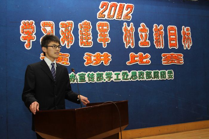 歷時三個月的在2012級新生中開展的“學習鄧建軍 樹立新目標”系列活動,在院級演講比賽暨頒獎儀式中圓滿結束。“學習鄧建軍 樹立新目標”演講決賽于12月5日晚在教學樓2樓報告廳舉行。院黨委副書記張濤、宣傳部長倪筱榮、思政部主任田洪芳、院團委書記吳麗云及各分團委書記來到比賽現場并參加了頒獎儀式,整場比賽由思政部老師擔任評委。張濤副書記作了精彩開幕致辭,他勉勵同學們擺正心態,找準位置,自強不息,追求卓越。最后,思政部李立新老師對比賽選手進行點評,他對同學們精彩的演講表示感謝,指出各位選手表現出了真誠和真實,由衷地希望大家能從此次比賽中提高對鄧建軍精神的領悟,做一名新時代的合格的大學生。