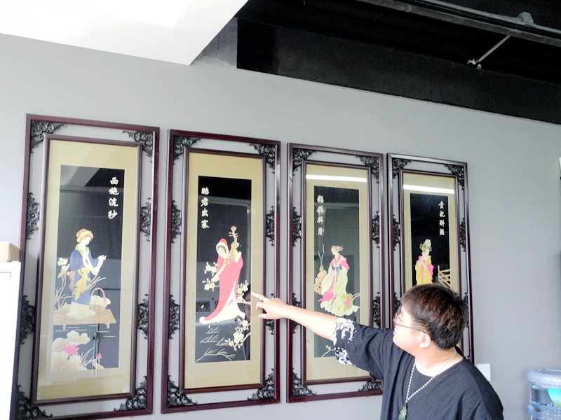 在一間100多平米的創客工作室內,裝裱考究的《四大美女》《梅蘭竹菊》《八駿馬》等一幅幅畫作掛滿了整面墻,一位穿著“五毒”辟邪圖案衣裳的小伙端坐桌前,將吸管粗細的麥稈浸泡、熏蒸、上色、漂洗后,用剪刀剖開,用熨斗燙平,拋光去膜,再將紙片狀麥稈,依照此前畫好的圖案裁剪、雕刻、拼接、粘貼、裝裱。龍騰虎躍與萬馬奔騰、嬌艷欲滴與蒼翠挺拔、婀娜多姿與可愛呆萌,從他手中孕育而生,這些畫有一個統一的種類名稱:麥稈畫。