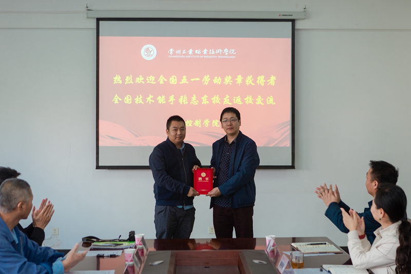 11月7日中午,智能控制學院舉辦技能導師聘任儀式,向全國五一勞動獎章獲得者、全國技術能手、常州德匠數控科技有限公司副總、我校校友張志東頒發技能導師聘書。副校長吳麗云、學工處處長柏鐵山、智控學院黨總支書記戴偉民、院長蔣正炎、鄧建軍學校文化研究會會長倪筱榮、常州德匠數控科技有限公司副總陸鵬出席聘任儀式,儀式由智控學院黨總支副書記麻麗娟主持。
