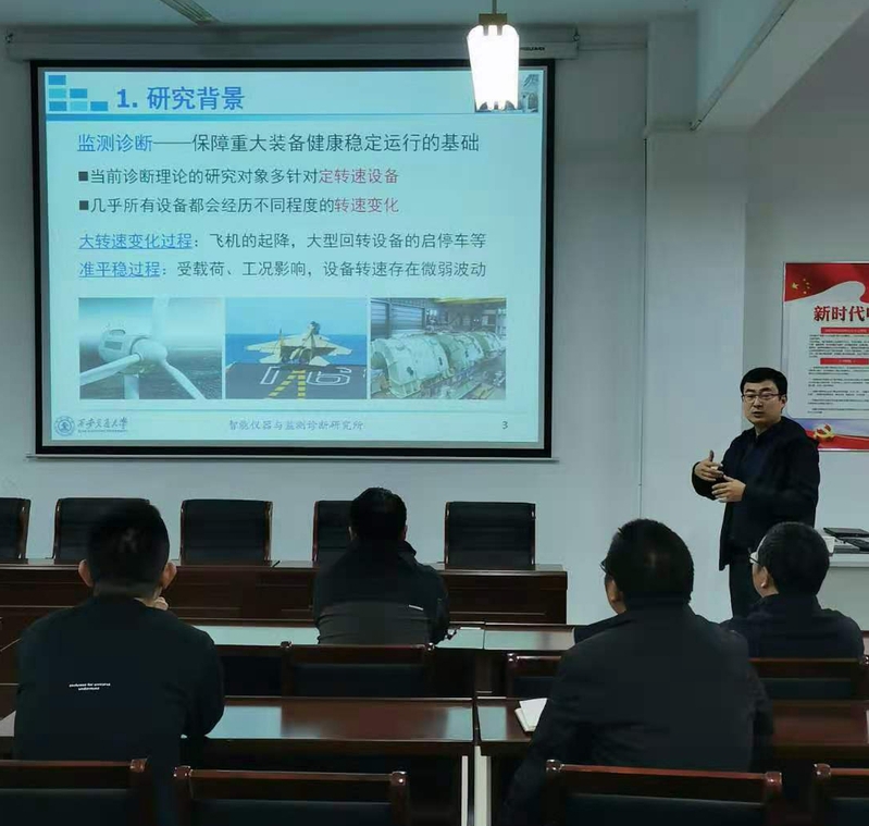 趙明的講座帶來了前沿的變工況定量化診斷技術(shù),令參與講座的博士們大開眼界,領(lǐng)略了裝備智能診斷的新技術(shù)新工藝。機(jī)械裝備監(jiān)測與診斷是保障航空、航天、能源、化工等領(lǐng)域眾多關(guān)鍵裝備安全穩(wěn)定運(yùn)行的基礎(chǔ)。許多重要裝備例如風(fēng)電、高鐵等往往運(yùn)行于變速-變載的復(fù)雜服役工況,工況的連續(xù)變化使得傳統(tǒng)監(jiān)測診斷理論與技術(shù)不再有效,大量故障無法被準(zhǔn)確識別與預(yù)測,給工業(yè)生產(chǎn)帶來了巨大的經(jīng)濟(jì)損失。