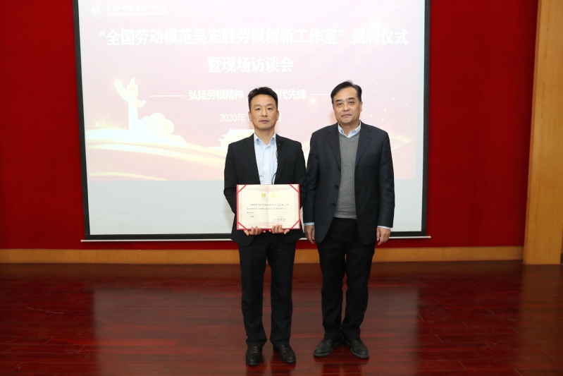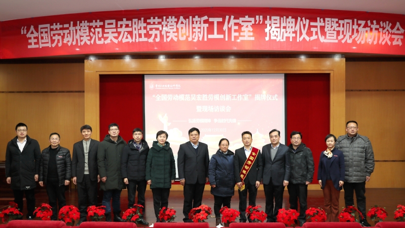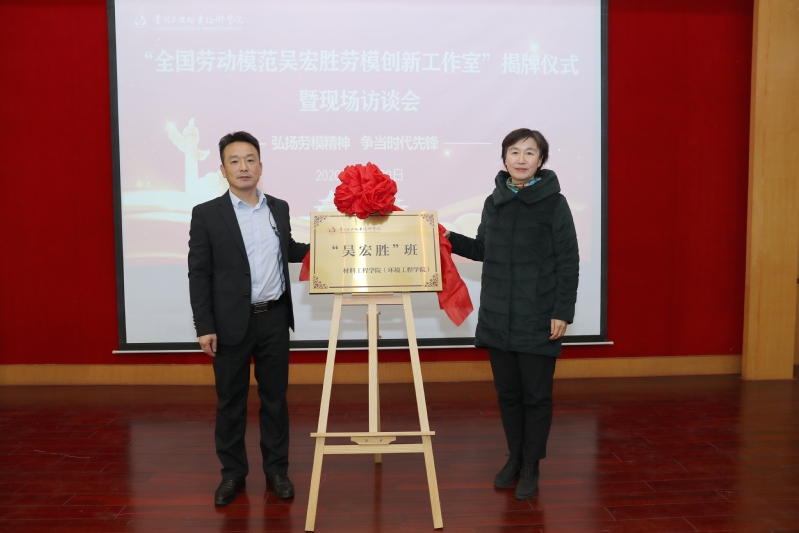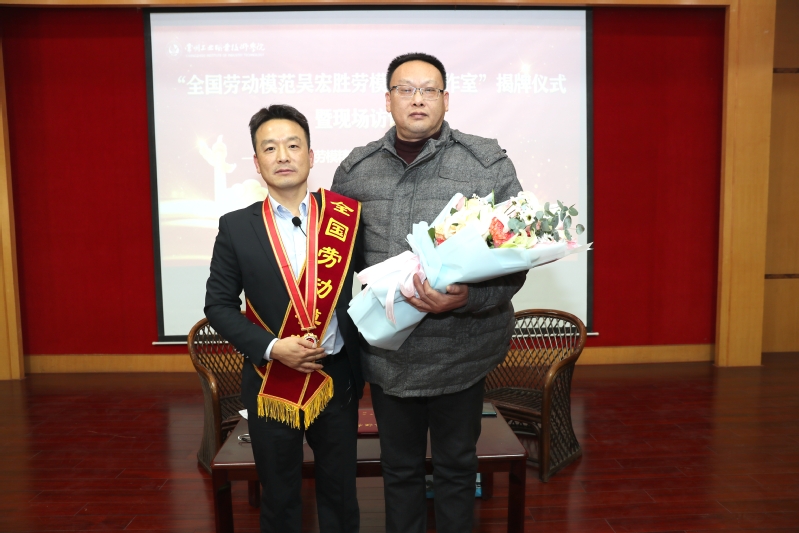 揭牌儀式由副校長吳麗云主持,繆昌武和吳宏勝共同為“全國勞動模范吳宏勝勞模創(chuàng)新工作室”揭牌,楊勁松為吳宏勝頒發(fā)了“德育導(dǎo)師”及“企業(yè)專業(yè)帶頭人”聘書,副校長蔣新萍和吳宏勝共同為“吳宏勝班”揭牌。“吳宏勝勞模創(chuàng)新工作室”的成立有助于更好地發(fā)揮以杰出校友吳宏勝為代表的新時代勞模的示范引領(lǐng)作用,弘揚(yáng)勞模精神、工匠精神;通過“傳幫帶”發(fā)揮勞模業(yè)務(wù)專長和技術(shù)優(yōu)勢,帶動廣大師生共同成長、共同進(jìn)步,激發(fā)廣大師生的創(chuàng)新熱情和創(chuàng)造活力,培育更多的能工巧匠和業(yè)界模范。