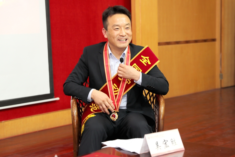 吳宏勝還向母校贈送了“師恩難忘”的牌匾,并將學(xué)生送給他的鮮花轉(zhuǎn)贈給了自己當(dāng)年的班主任,用實(shí)際行動踐行母校“感恩知責(zé)”的學(xué)校文化。在吳宏勝獨(dú)特的人格魅力下,現(xiàn)場氣氛熱烈,廣大師生都變成了追星一族,借助如此火熱的“明星見面會”,他向同學(xué)們發(fā)出倡議:要堅(jiān)守專注的工匠精神、發(fā)揚(yáng)拼搏的奮斗精神、追求忘我的奉獻(xiàn)精神,要學(xué)習(xí)專心、做事用心、待人誠心,成為熱愛勞動、勤于勞動、善于勞動的高素質(zhì)勞動者,更好地?fù)?dān)當(dāng)祖國和時代賦予的重任。