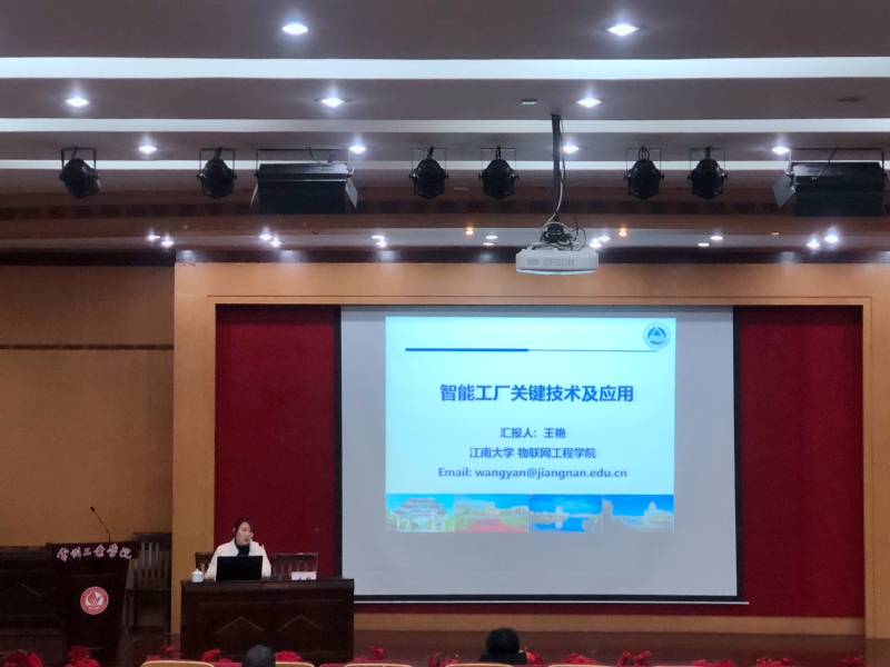 12月29日下午,江南大學(xué)物聯(lián)網(wǎng)工程學(xué)院王艷教授應(yīng)邀來(lái)我校作關(guān)于《智能工廠關(guān)鍵技術(shù)及應(yīng)用》的學(xué)術(shù)報(bào)告。副校長(zhǎng)蔣新萍參加報(bào)告會(huì),會(huì)議由科技處副處長(zhǎng)袁飛主持。