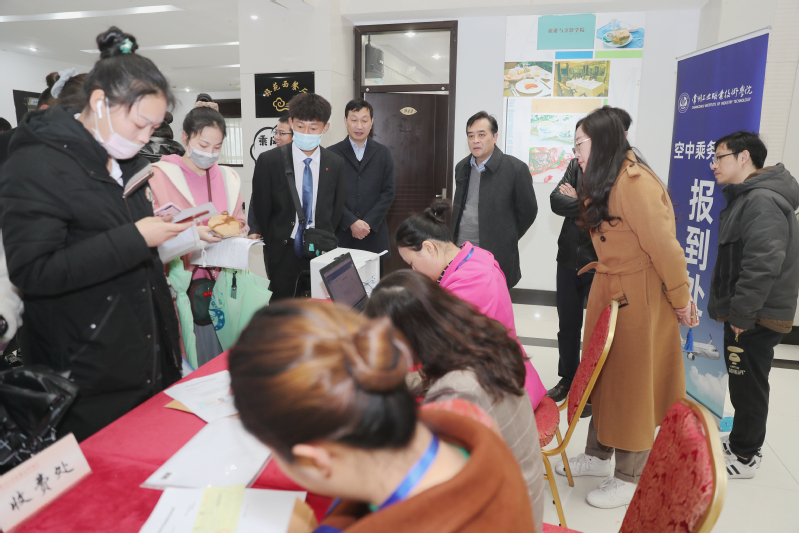 3月19日上午,旅游與烹飪學(xué)院舉行空中乘務(wù)專業(yè)提前招生考試,校黨委書記繆昌武、校長(zhǎng)楊勁松、副校長(zhǎng)姚慶文來到面試現(xiàn)場(chǎng),檢查指導(dǎo)學(xué)院招生考試工作,并慰問了校企合作單位——北京廣匯京通教育科技有限公司,華東航空醫(yī)院體檢中心相關(guān)工作人員。