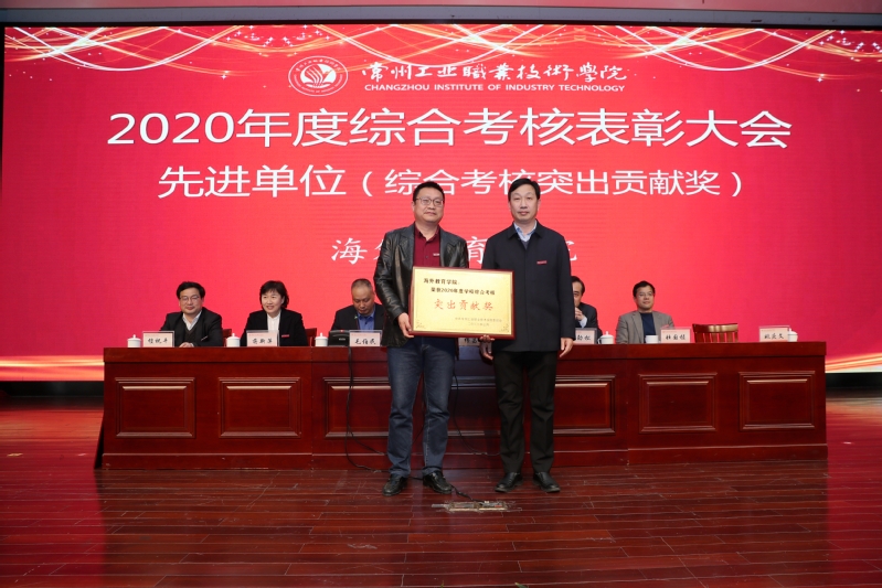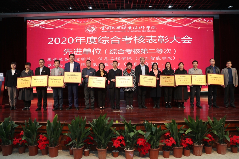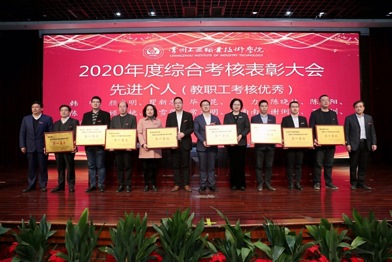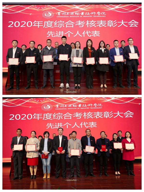 會上,校長楊勁松宣讀了《常州工業職業技術學院2020年度綜合考核表彰決定》,全校共評選出20個先進單位,157個先進個人。楊勁松代表學校向獲得表彰的先進單位和個人表示衷心祝賀,希望受表彰單位和個人再接再厲,希望全校各單位要以先進為榜樣,為學校跨越式發展作出新的貢獻。隨后,校領導為榮獲2020年度綜合考核先進單位、先進個人分別頒發了榮譽獎牌和榮譽證書。