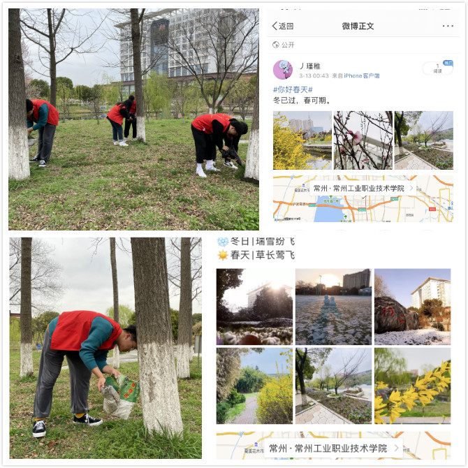 信息工程學院于3月組織了30名學生志愿者開展植綠護綠行動,為學院守護的銀杏林松土施肥。當天,學生志愿者們認真聽取老師講授植物知識和綠化常識,接著為樹木修枝、松土、施肥,積極認真,相互配合,干勁十足,以實際行動踐行“綠水青山就是金山銀山”理念。此外,信息工程學院還發動在校學生在微信、微博等線上平臺發布校園風景相關圖文消息,通過帶有“你好春天”“低碳校園”“綠植領養”等話題的圖文發布,在感受校園春意的同時為最美校園打call。
