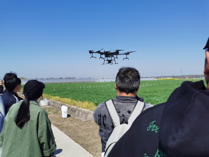 在春暖花開的農田間,同學們了解了農藥的基本知識以及常見的病蟲草害,學習飛防植保的規范流程和植保無人機的維護與保養,并分組在小麥田和櫻花園使用大疆無人機和極飛無人機進行手動作業和全自主作業的實戰演練。