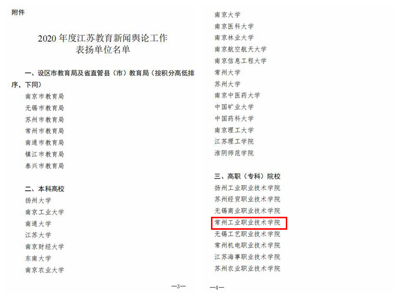 據悉,江蘇省教育廳每年根據各單位在中央綜合性主要媒體、中央行業性媒體、省級綜合性主要媒體刊發的相關專題新聞進行積分統計、排名,對成績較好的單位進行表揚。此次全省共通報表彰了6 個設區市教育局、20 所本科院校、20 所高職(專科)院校。