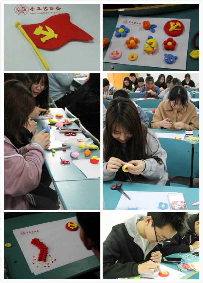 春風拂面,綠柳如絲,伴著春天的腳步,信息工程學院手工藝社團于4月1日下午在教學樓舉行了一場別開生面的社團活動。為了積極落實黨史學習教育的決策部署,本次活動的主題以“青春心向黨”為主題,通過大家的無限想象,用黏土和剪紙制作出黨旗作品,表達青年對黨和祖國的無限熱愛。