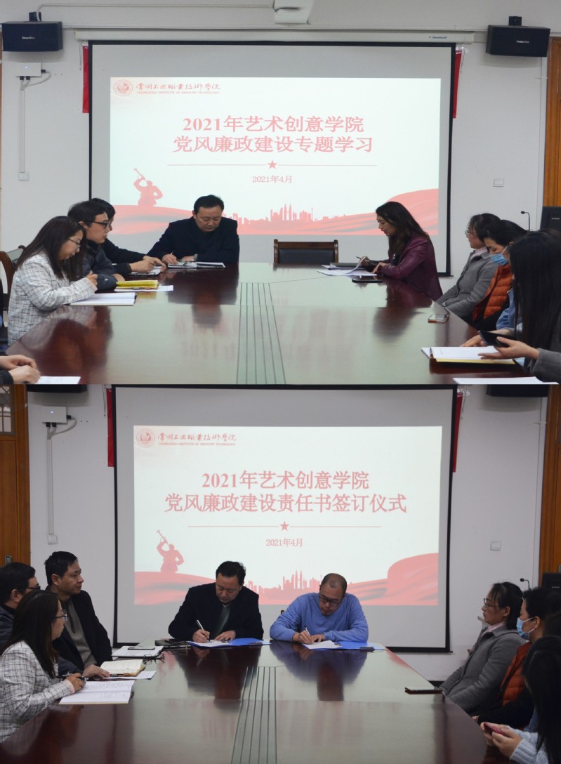 管衛(wèi)中與教研室主任、綜合辦主任、分團(tuán)委書記等簽訂《2021年藝術(shù)創(chuàng)意學(xué)院黨風(fēng)廉政建設(shè)責(zé)任書》。各部門負(fù)責(zé)人表示,要認(rèn)真履行黨風(fēng)廉政工作責(zé)任,不斷嚴(yán)明政治紀(jì)律和政治規(guī)矩,提升全面從嚴(yán)治黨的工作質(zhì)效。