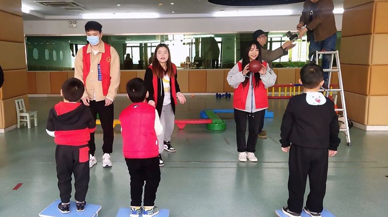 在我們的生活中,有一群特殊的孩子,他們與普通的孩子不同,人們把他們叫做“來自星星的孩子”。殘障兒童在精神和身體都與正常兒童有很大差別,無法正常生活,對于他們的康復(fù)訓(xùn)練是一項非常艱苦而漫長的過程,需要有極大的耐心和愛心。去年受到疫情的影響,志愿者已經(jīng)許久沒來,今年再次來到常州市殘障兒童康復(fù)中心,志愿者們依然感到十分親切。在專業(yè)社工的指導(dǎo)下,志愿者們陪伴殘障兒童上了語音能力訓(xùn)練課。隨后,志愿者們又陪孩子們一對一做康復(fù)訓(xùn)練,和孩子們一起上體育課,聽孩子們唱歌,在志愿者們的陪伴下,孩子們的臉上露出了天真的笑容。藝術(shù)創(chuàng)意學(xué)院的志愿者們也用自己的實際行動為這些特殊的孩子們貢獻出自己的一份力量,傳遞自己的愛心。